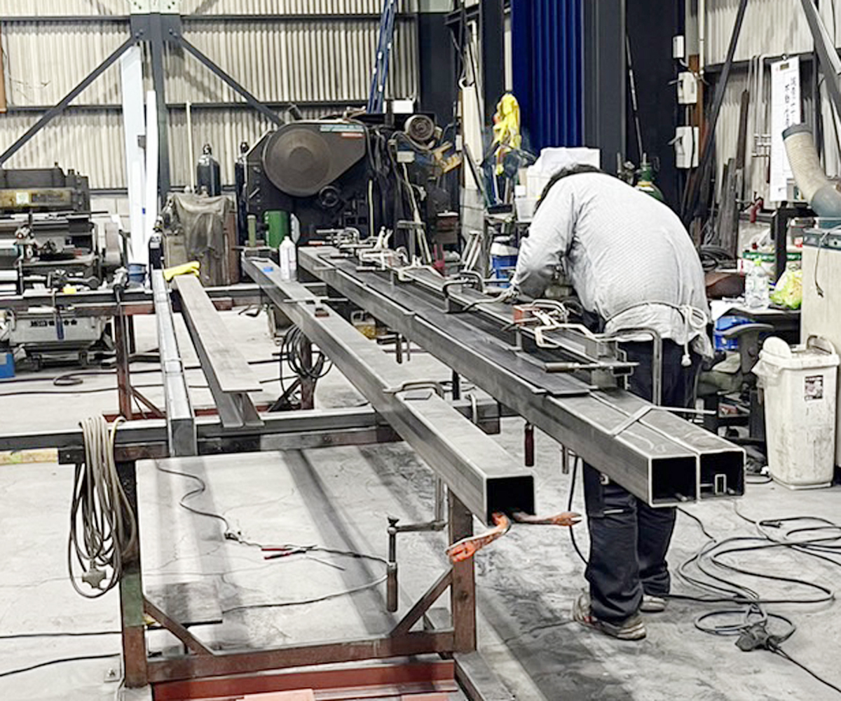 当社は建築金物をメインに金属加工を行っています。 職人による溶接加工に加え、CADを用いた建築物の設計・施工まで承っております。 建築現場では設計責任者や大工さんなど他業種と協力しながら、今後もより質が高い建築を、スピーディーに行うことを目指していきます。